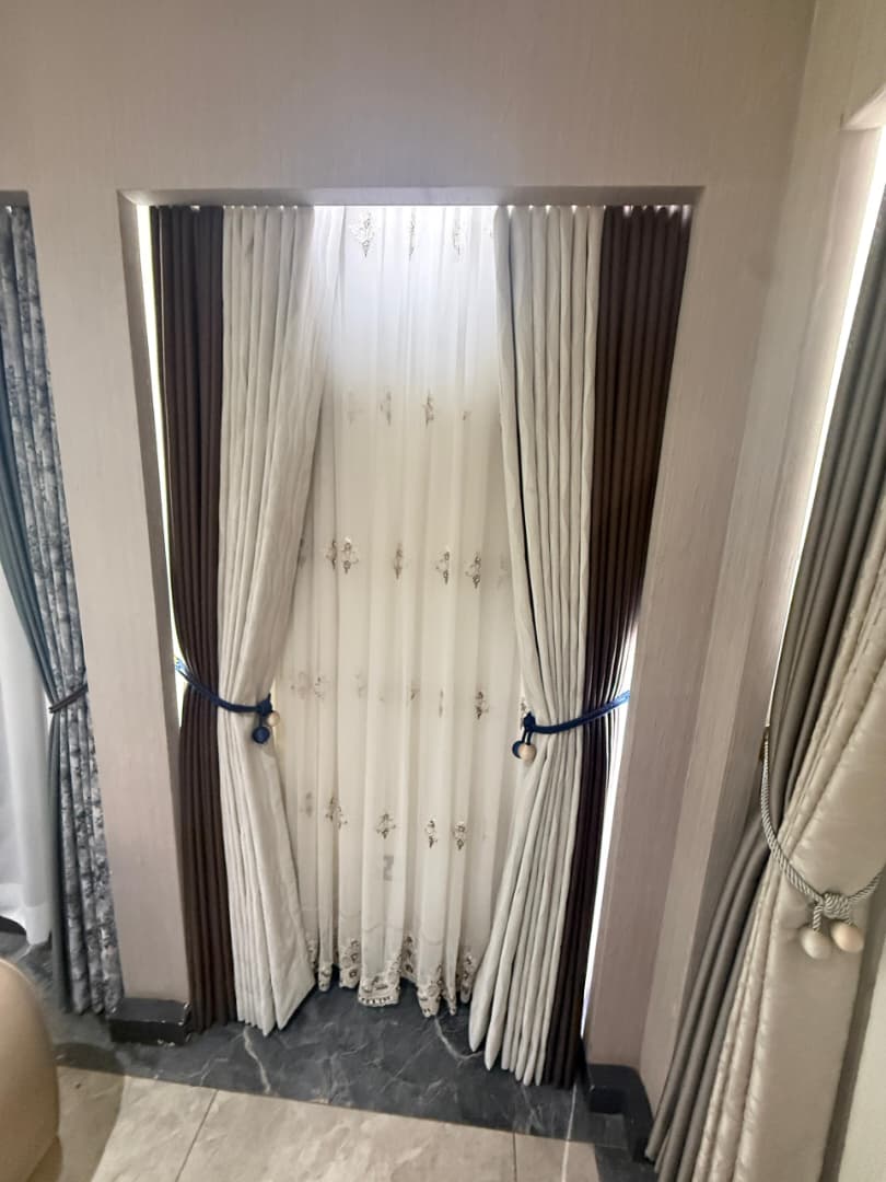 Curtains are functional and decorative fabric panels hung over windows or doorways to control light, enhance privacy, and add style to a room. They are available in various materials, lengths, and mounting styles—such as rods or tracks—and offer insulation against temperature changes and nois
