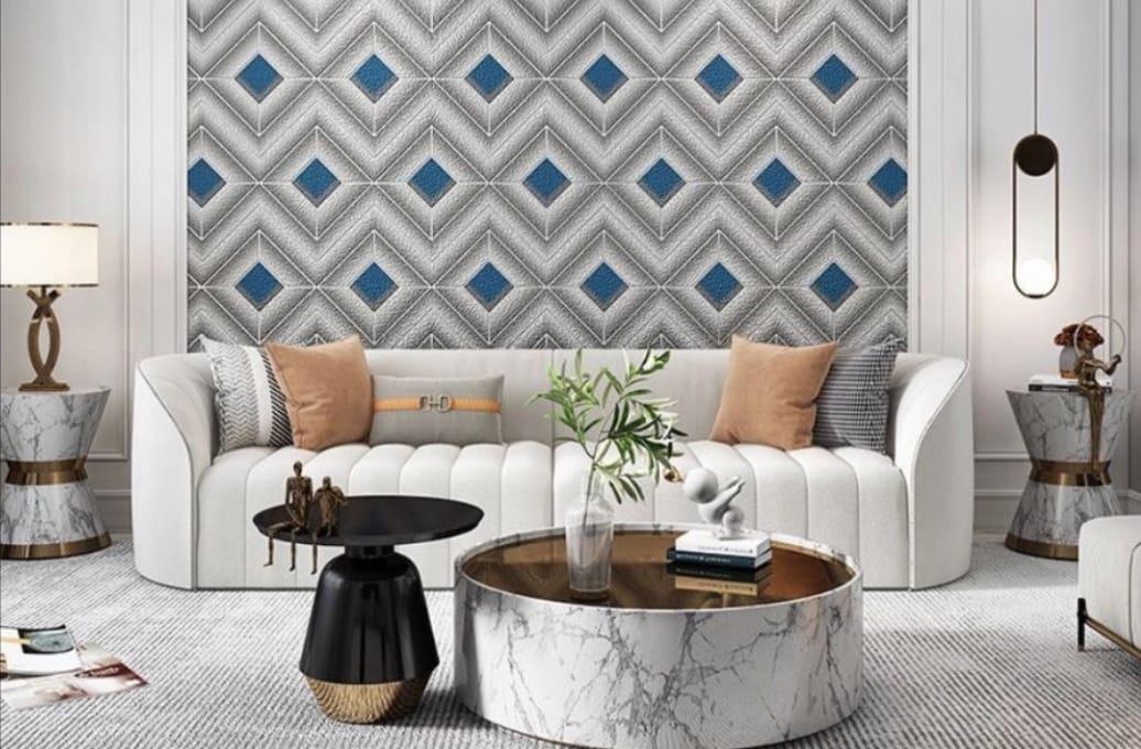 Durable and versatile interior design covering, sold in rolls, used to add texture, color, and pattern to walls, furniture, or ceilings